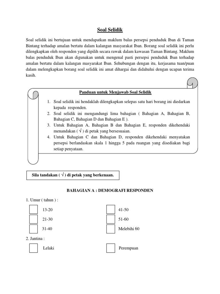 Contoh Borang Soal Selidik 1 Pdf